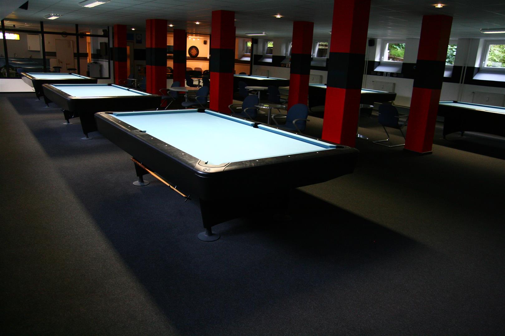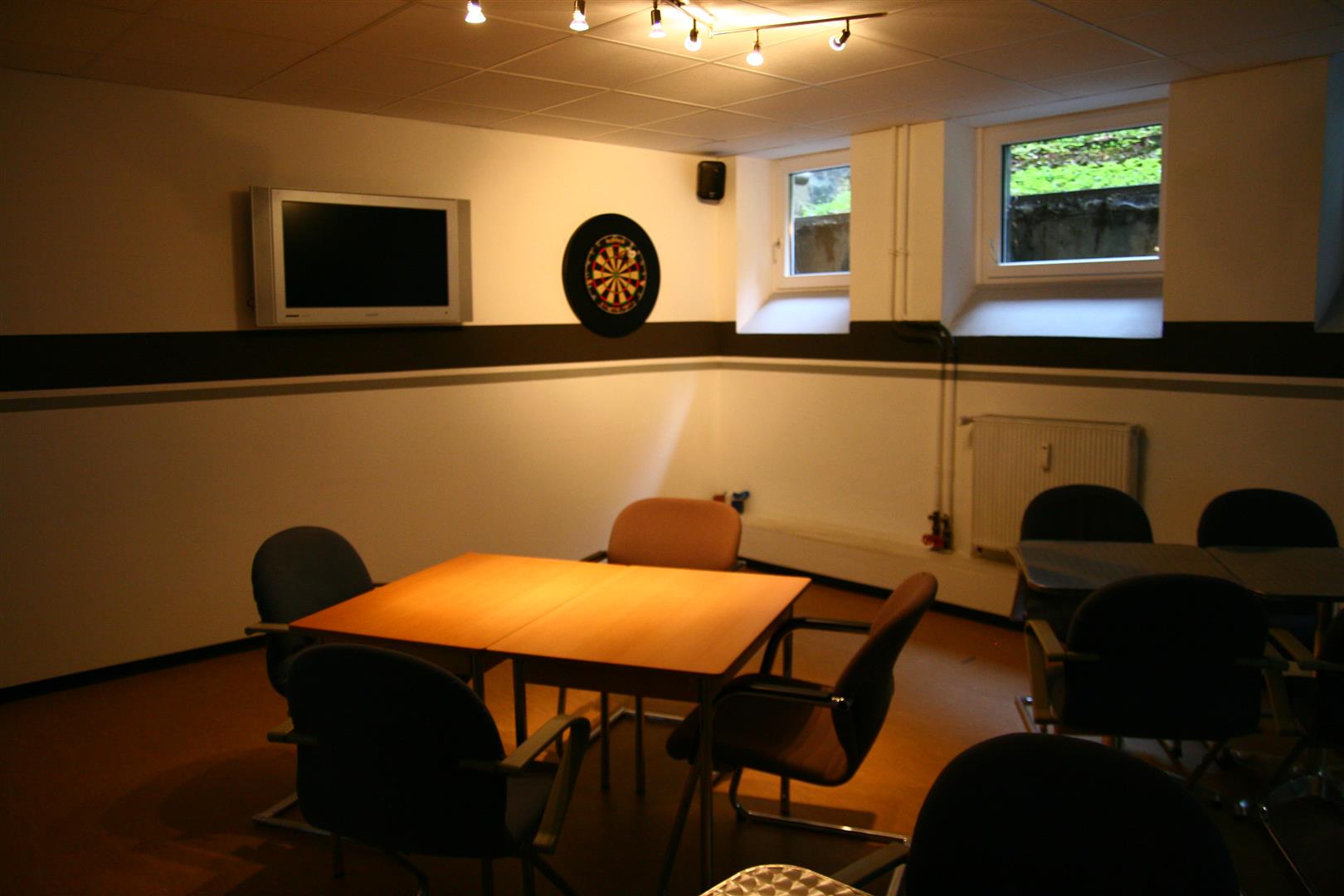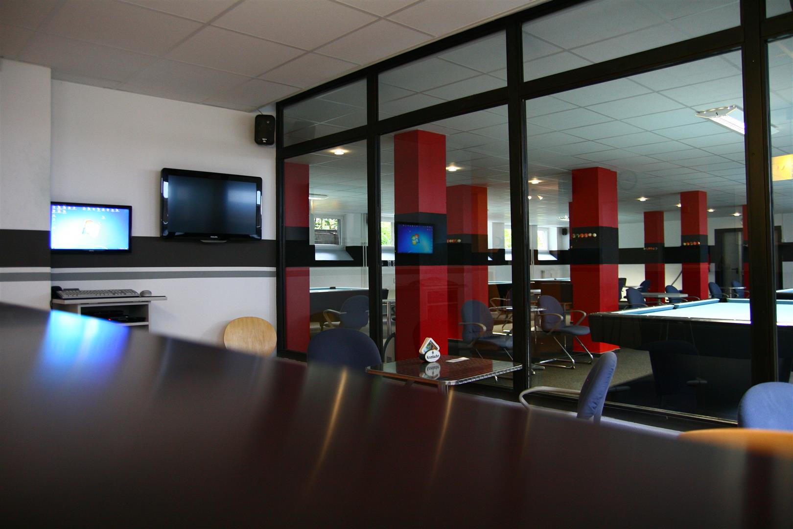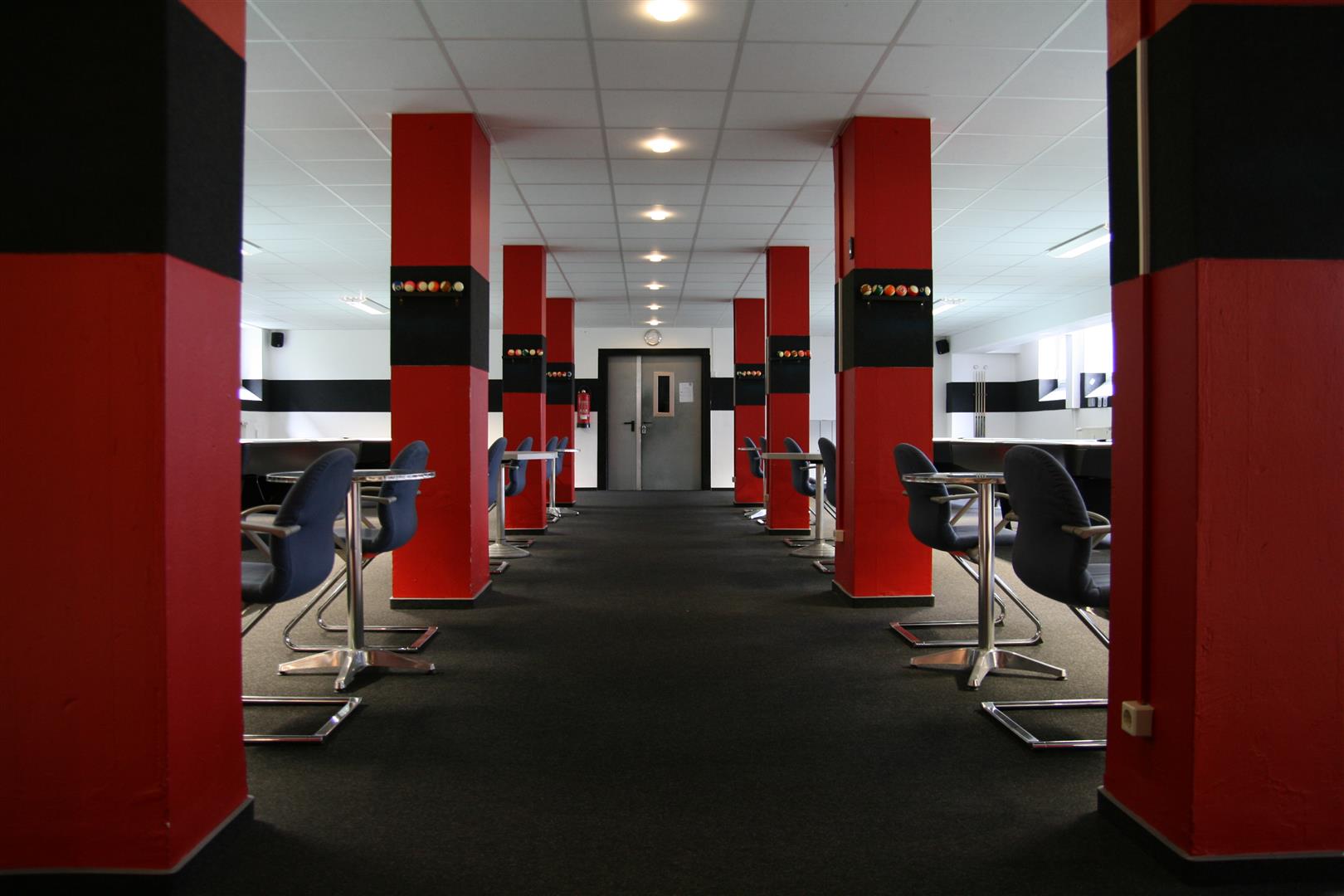 Vom Thekenbereich aus können Spiele duch eine Glaswand beobachtet werden
