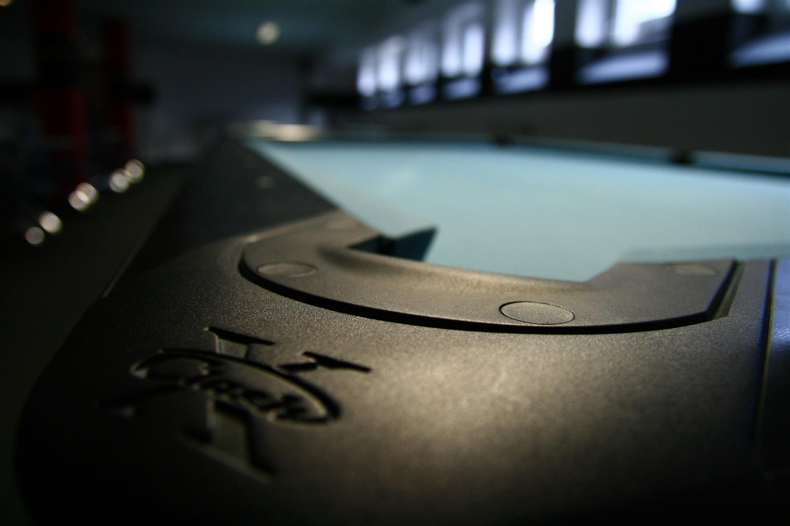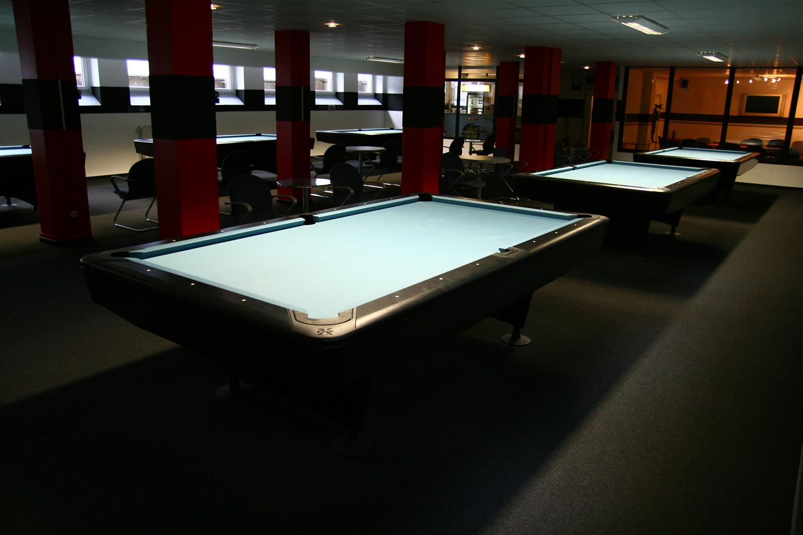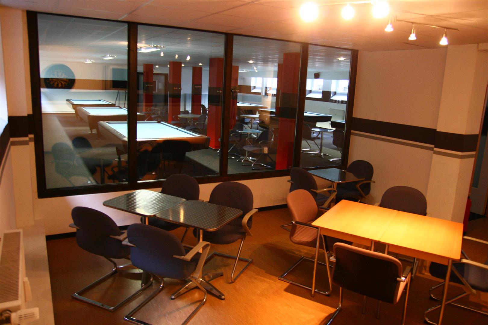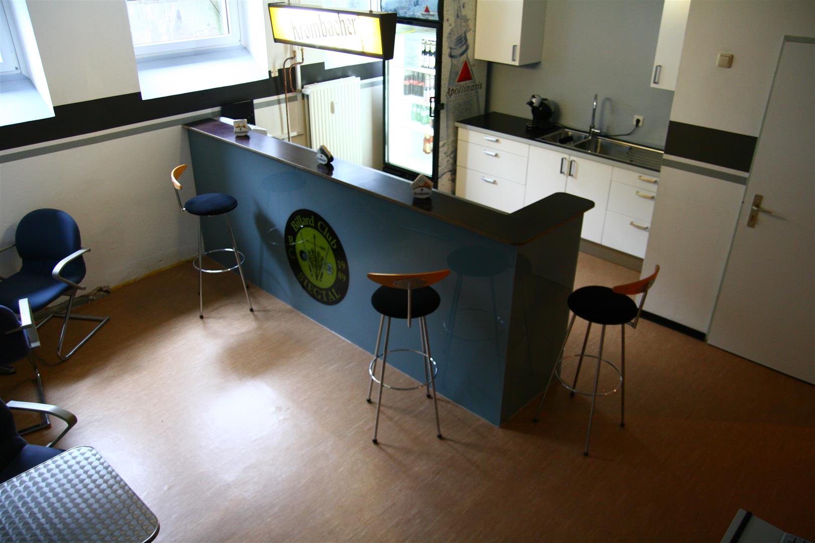 Vom Thekenbereich aus können Spiele duch eine Glaswand beobachtet werden